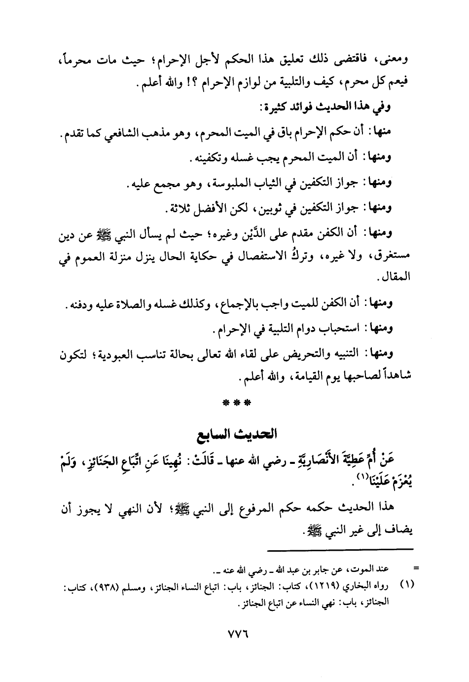 عَنْ أمِّ عَطِيَّةَ الأنْصَارِيَّةِ - رضي الله عنها - قَالَتْ: نُهِينَا عَنِ اتِّبَاعِ الجَنَائزِ، وَلَمْ يُعْزَمْ عَلَيْنَا (¬1).