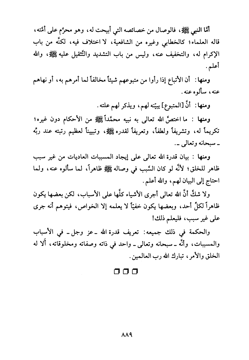 ولا شكَّ أن الله تعالى أجرى الأشياء كُلَّها على الأسباب، لكن بعضها يكون ظاهرًا لكلِّ أحد، وبعضها يكون خفيًّا لا يعلمه إلا الخواص، فيتوهم أنه جرى على غير سبب، فليعلم ذلك!