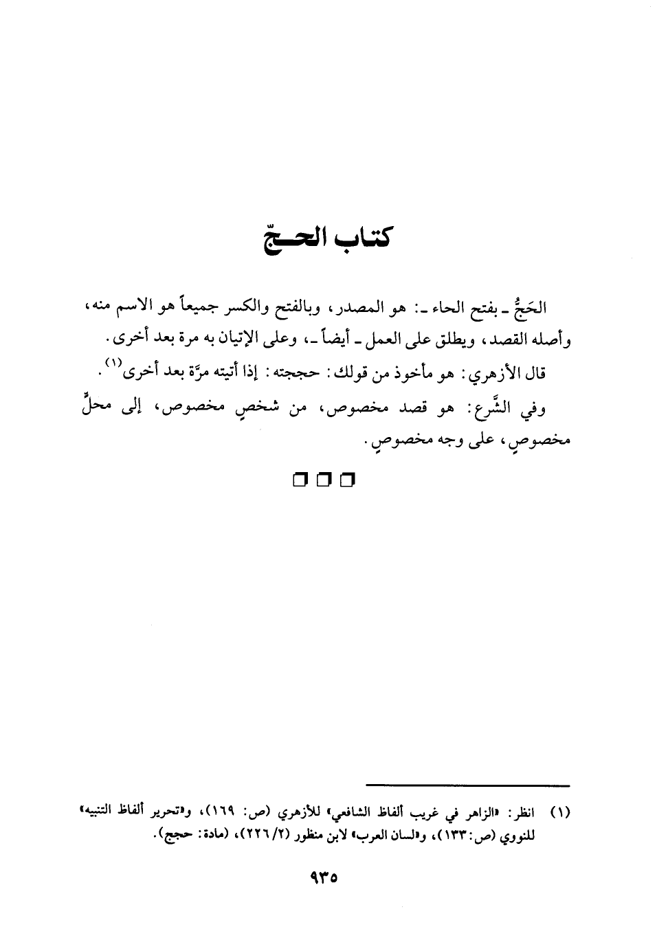 (¬1) انظر: "الزاهر في غريب ألفاظ الشافعي" للأزهري (ص: 169)، و"تحرير ألفاظ التنبيه" للنووي (ص: 133)، و"لسان العرب" لابن منظور (2/ 226)، (مادة: حجج).