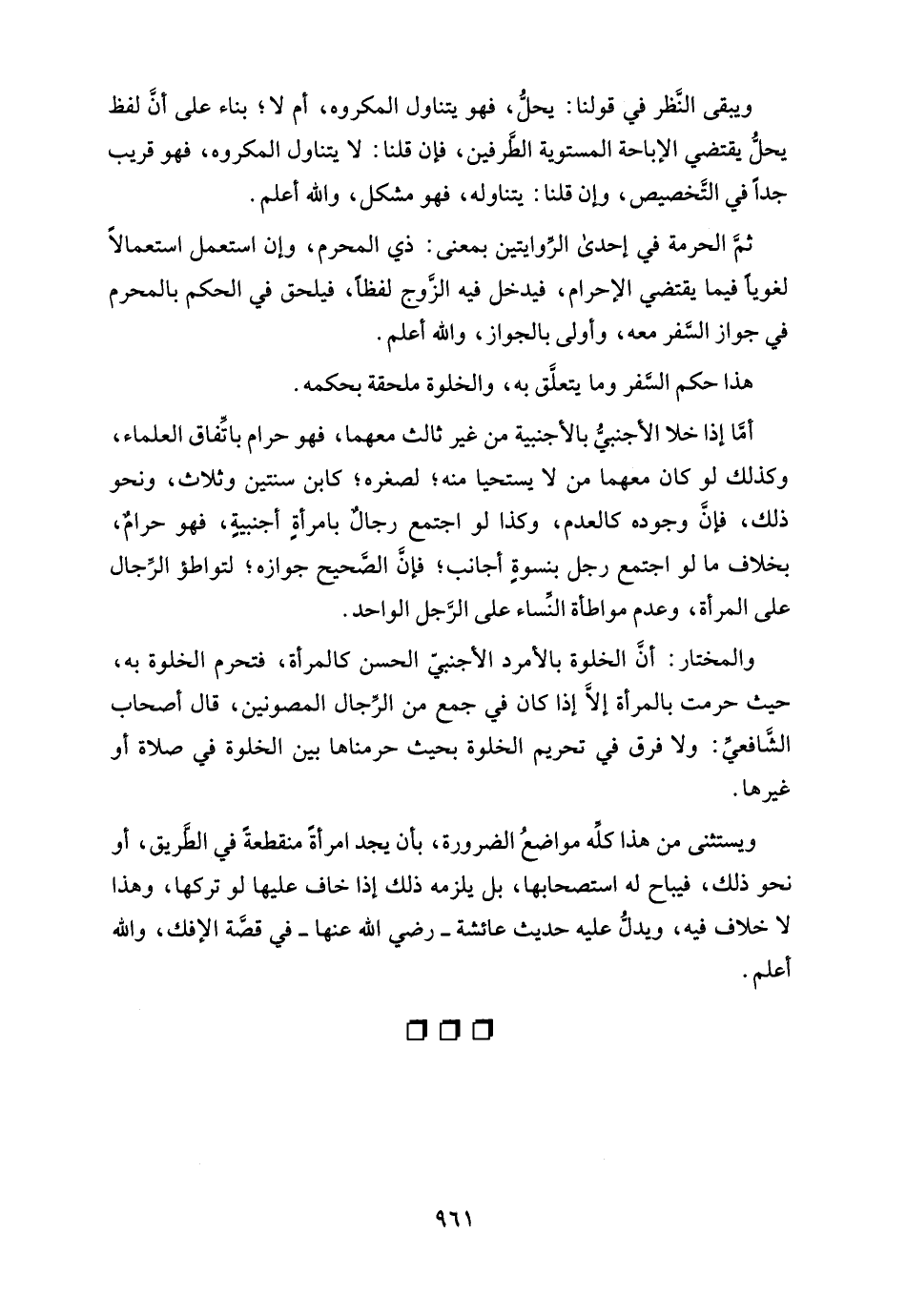 هذا حكم السَّفر وما يتعلَّق به، والخلوة ملحقة بحكمه.