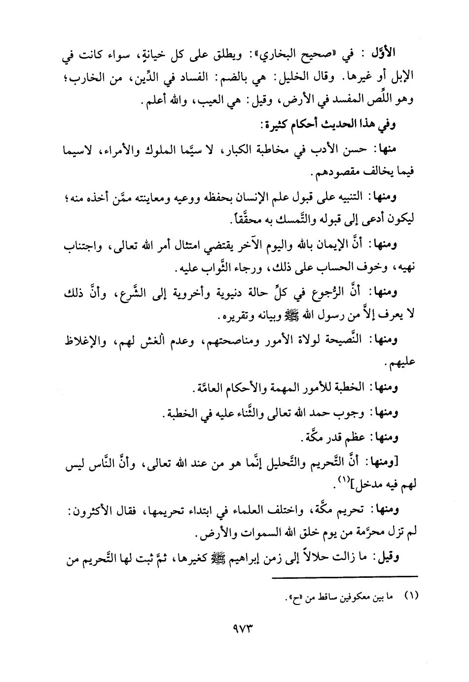 ومنها: تحريم مكَّة، واختلف العلماء في ابتداء تحريمها، فقال الأكثرون: لم تزل محرَّمة من يوم خلق الله السموات والأرض.