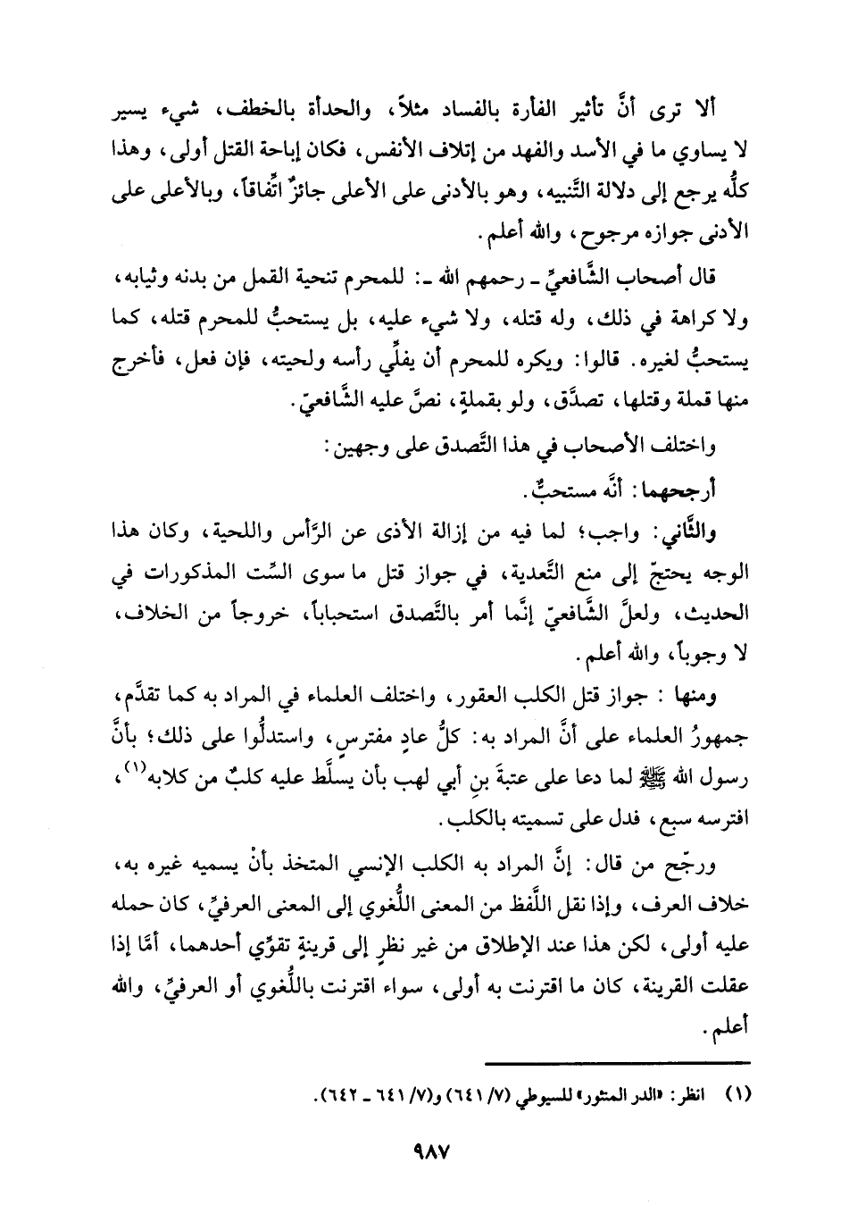 والثَّاني: واجب؛ لما فيه من إزالة الأذى عن الرَّأس واللحية، وكان هذا الوجه يحتجّ إلى منع التَّعدية، في جواز قتل ما سوى السِّت المذكورات في الحديث، ولعلَّ الشَّافعيّ إنَّما أمر بالتصدق استحبابًا، خروجًا من الخلاف، لا وجوبًا، والله أعلم.