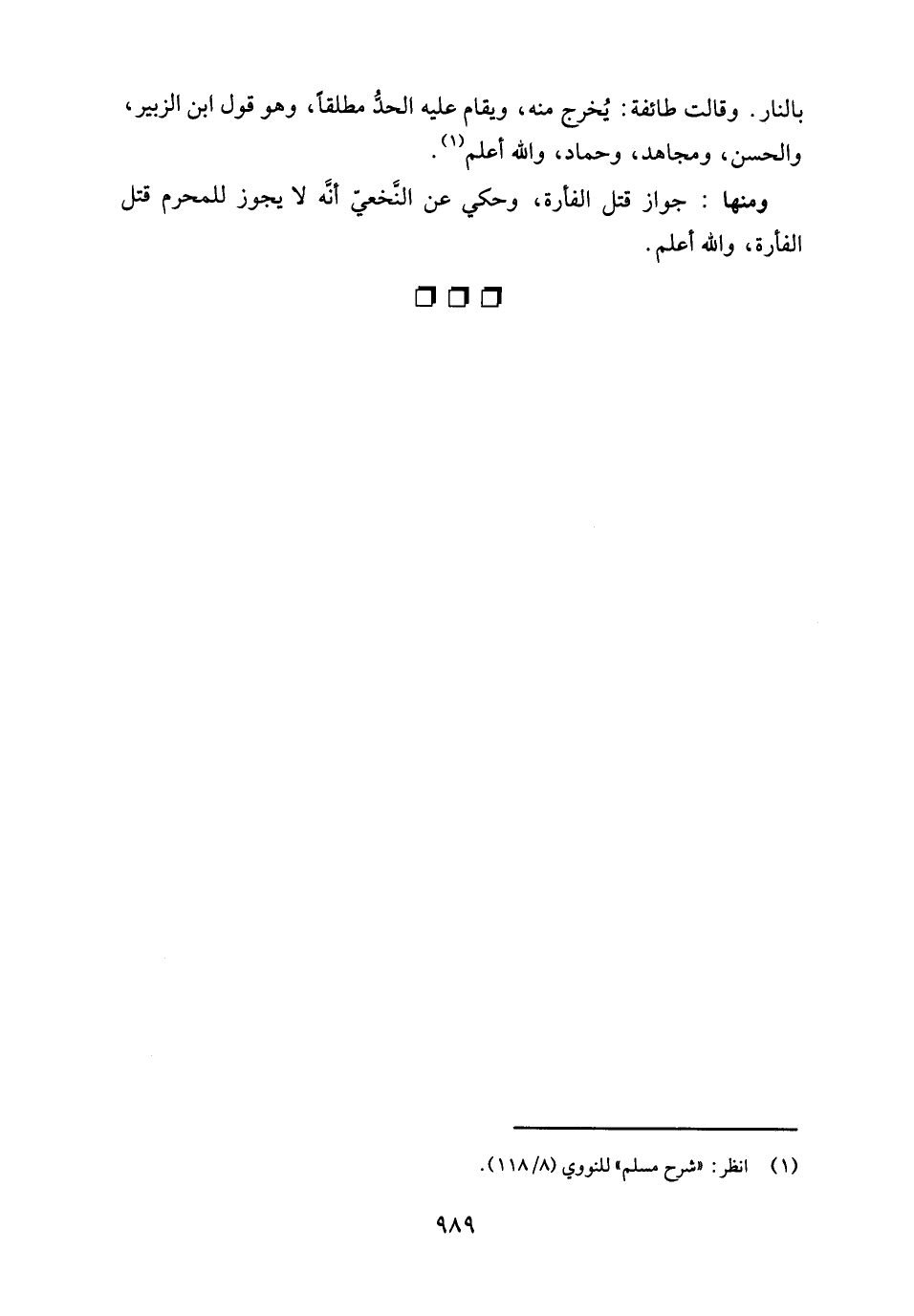 ومنها: جواز قتل الفأرة، وحكي عن النَّخعيّ أنَّه لا يجوز للمحرم قتل الفأرة، والله أعلم.