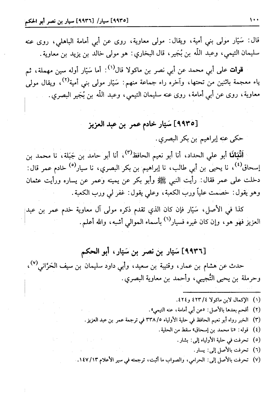 أنبأنا أبو علي الحداد، أنا أبو نعيم الحافظ «3» ، أنا أبو حامد بن جبلة، نا محمد بن إسحاق «4» ، نا يحيى بن أبي طالب، نا إبراهيم بن بكر البصري، نا سيار «5» خادم عمر قال: