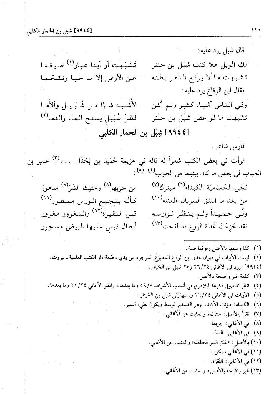نجّى الحساميّة الكبداء «6» مبترك «7» من حربها «8» وحثيث الشّرّ «9» مذعور