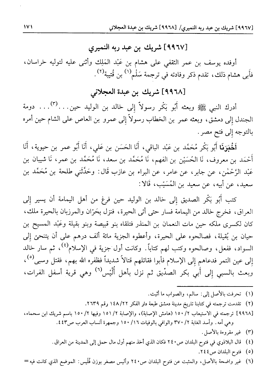أدرك النبي صلّى الله عليه وسلّم وبعثه أبو بكر رسولا إلى خالد بن الوليد حين ... «3» ... دومة الجندل إلى دمشق، وبعثه عمر بن الخطاب رسولا إلى عمرو بن العاص على الشام حين أمره بالتوجه إلى فتح مصر.