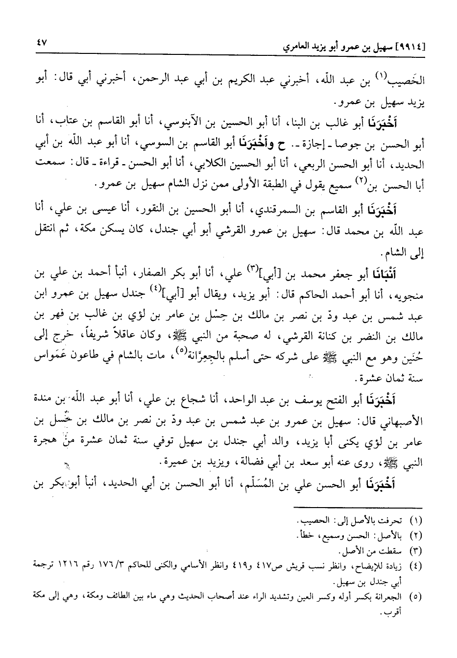الخصيب «1» بن عبد الله، أخبرني عبد الكريم بن أبي عبد الرحمن، أخبرني أبي قال: أبو يزيد سهيل بن عمرو.