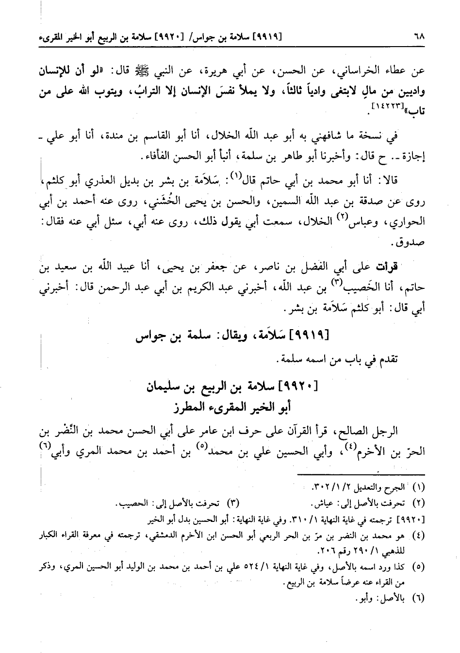 [9920] سلامة بن الربيع بن سليمان أبو الخير المقرىء المطرز