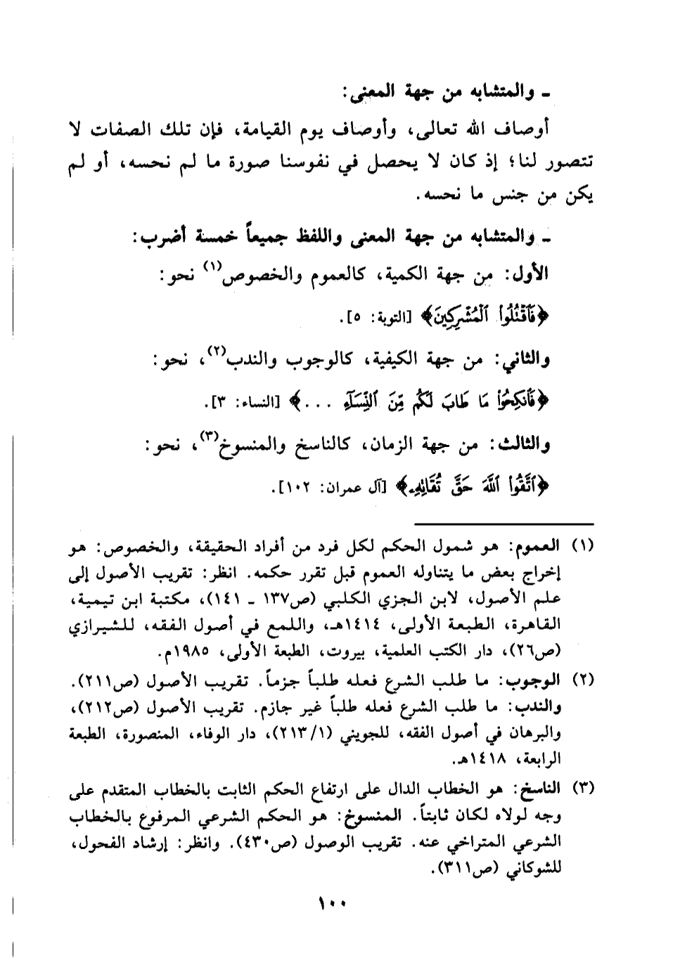 (¬1) العموم: هو شمول الحكم لكل فرد من أفراد الحقيقة، والخصوص: هو إخراج بعض ما يتناوله العموم قبل تقرر حكمه، انظر: تقريب الأصول إلى علم الأصول لابن جزئ الكلبي، ص: 137-141، مكتبة ابن تيمية، القاهرة، الطبعة الأولى، 1414.