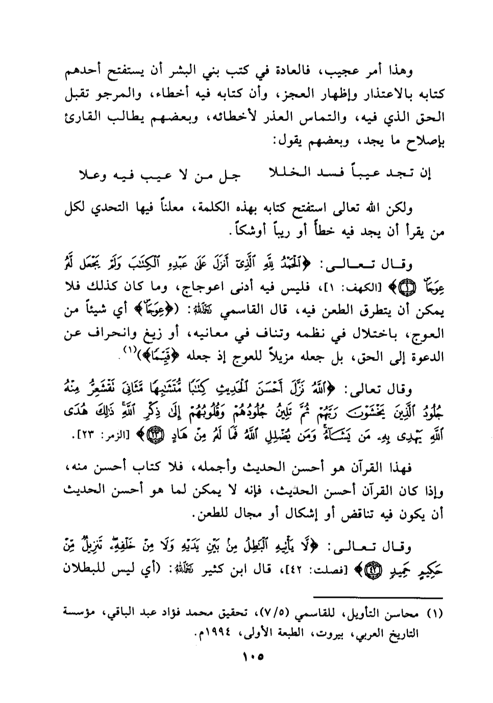 (¬1) محاسن التأويل للقاسمي (5/7) ، تحقيق محمد فؤاد عبد الباقي، مؤسسة التاريخ العربي، بيروت، الطبعة الأولى، 1994.