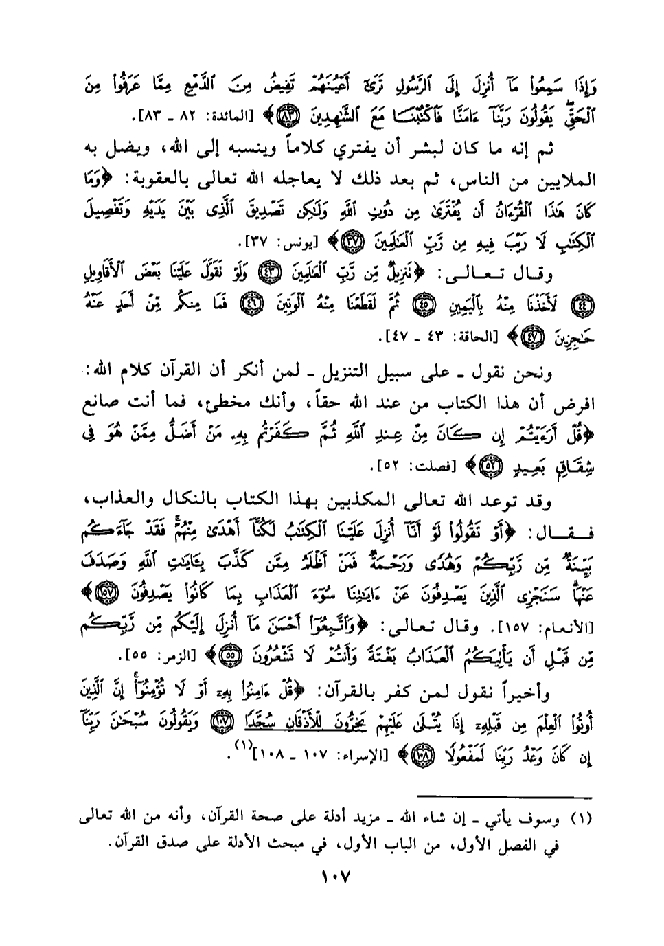 (¬1) وسوف يأتي - إن شاء الله - مزيد أدلة على صحة القرآن، وأنه من الله تعالى في الفصل الأول، من الباب الأول، في مبحث الأدلة على صدق القرآن.