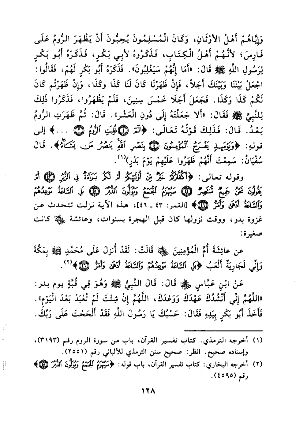 (¬1) أخرجه الترمذي (كتاب تفسير القرآن، باب من سورة الروم، رقم:3193) ، وإسناده صحيح. انظر: صحيح سنن الترمذي للألباني رقم: 2551.