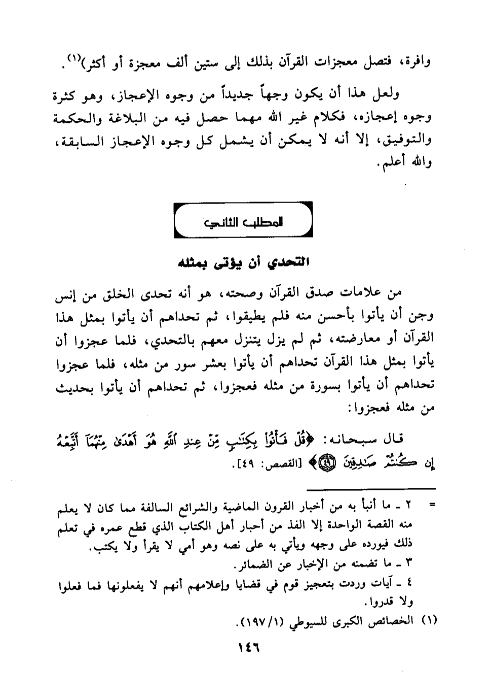 المطلب الثاني: التحدي أن يؤتى بمثله:
