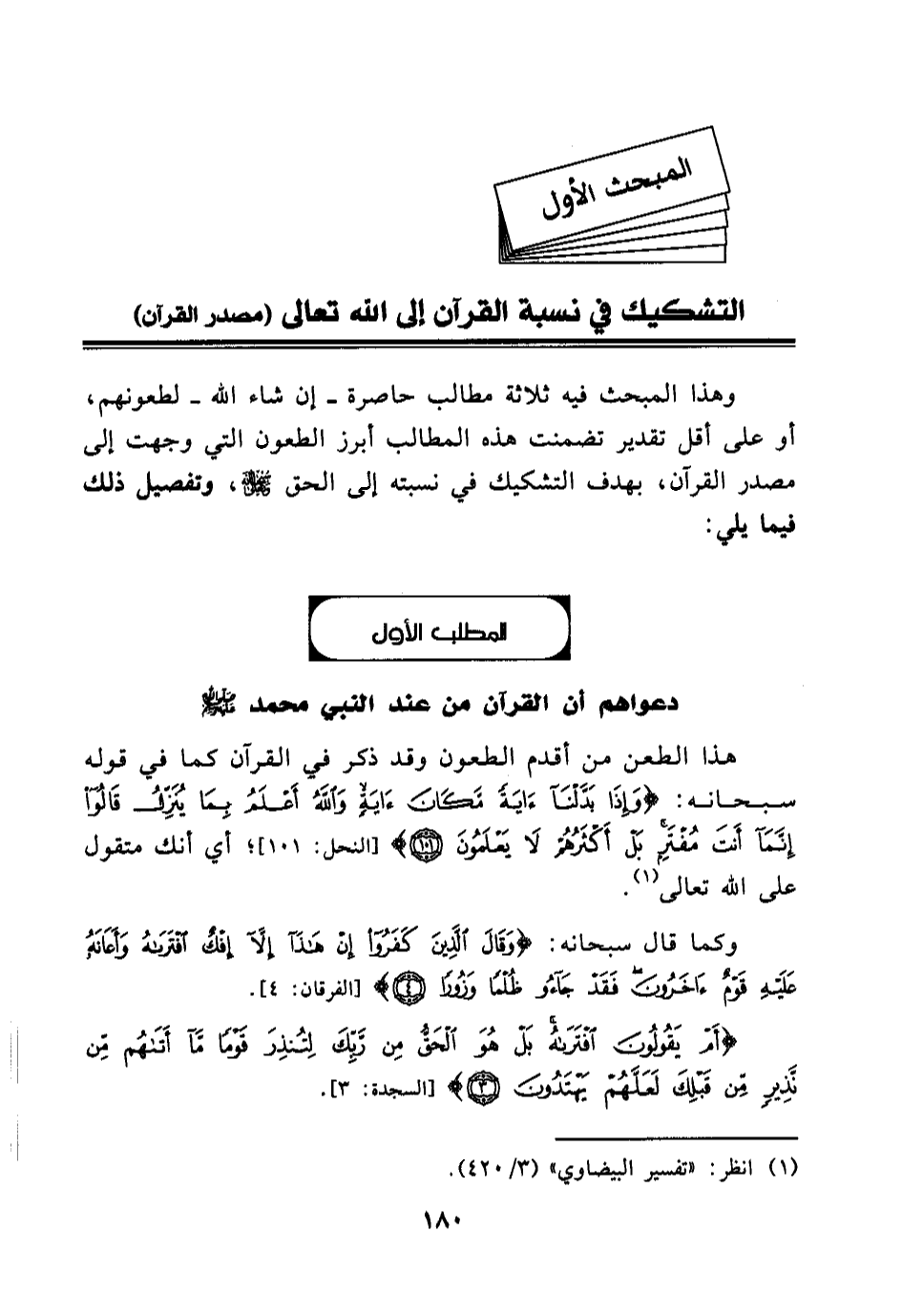 المبحث الأول: التشكيك في نسبة القرآن إلى الله تعالى (مصدر القرآن)