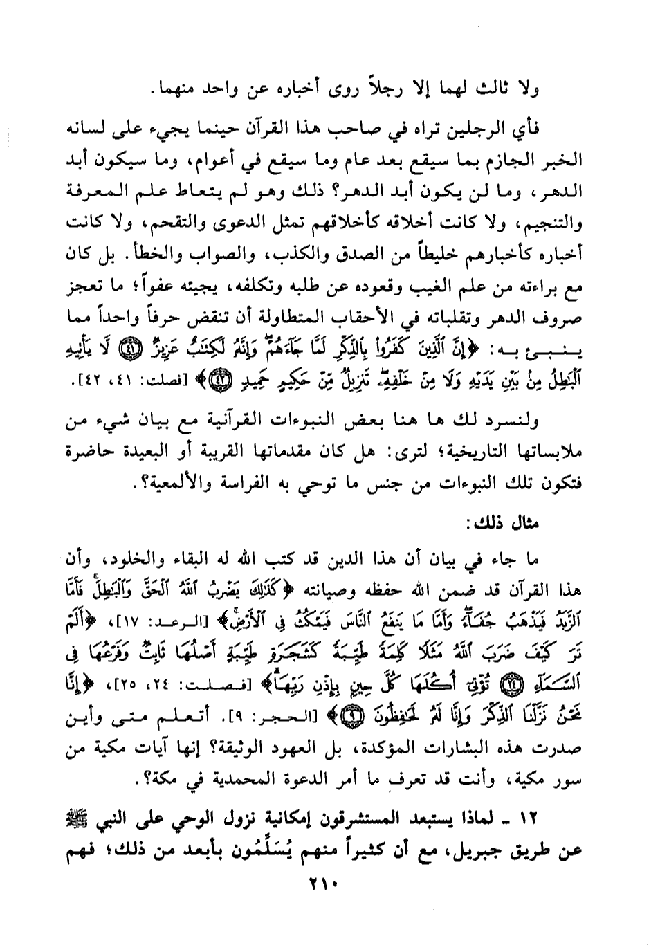 أتعلم متى وأين صدرت هذه البشارات المؤكدة، بل العهود الوثيقة؟ إنها آيات مكية من سور مكية، وأنت قد تعرف ما أمر الدعوة المحمدية في مكة؟ عشر سنوات كلها إعراض من قومه عن الاستماع لقرآن، وصد لغيرهم عن الإصغاء له، واضطهاد وتعذيب لتلك الفئة القليلة التي آمنت به، ثم مقاطعة له ولعشيرته ومحاصرتهم مدة غير يسيرة في شِعب من شِعاب مكة، ثم مؤامرات سرية أو علنية على قتله أو نفيه، فهل للمرء أن يلمح في ثنايا هذا الليل الحالك , الذي طوله عشرة أعوام، شعاعاً ولو ضئيلاً من الرجاء أن يتنفس صبحه عن الإذن لهؤلاء المظلومين برفع صوتهم وإعلان دعوتهم؟ ولو شام المصلح تلك البارقة من الأمل في جوانب نفسه من طبيعة دعوته، لا في أفق الحوادث، فهل يتفق له في مثل هذه الظروف أن يربوا في نفسه الأمل حتى يصير حكماً قاطعاً؟ وهَبْهُ امتلأ رجاء بظهور دعوته في حياته ما دام يتعهدها بنفسه، فمن يتكفل له بعد موته ببقاء هذه الدعوة وحمايتها وسط أمواج المستقبل العاتية؟ وكيف يجيئه اليقين في ذلك , وهو يعلم من عبر الزمان ما يفت في عضد هذا اليقين؟ فكم من مصلح صرخ بصيحات الإصلاح , فما لبثت أصواته أن ذهبت أدراج الرياح! وكم من مدينة قامت في التاريخ ثم عفت ودرست آثارها! وكم من نبي قتل! وكم من كتابٍ فقد أو انتقص أو بدل! وهل كان محمد (صلى الله عليه وسلم) ممن تستخفه الآمال فيجري مع الخيال؟ إنه ما كان قبل نبوته يطمع في أن يكون نبياً يوحى إليه {وما كنت ترجو أن يلقى إليك الكتاب إلا رحمةً من ربك} [القصص:86] ولا كان بعد نبوته يضمن لنفسه أن يبقى هذا الوحي محفوظاً لديه {ولئن شئنا لنذهبن بالذي أوحينا إليك ثم لا تجد لك به علينا وكيلاً إلا رحمة من ربك إن فضله كان عليك كبيراً} [الإسراء: 86-87] ؛ فلابد إذاً من كفيل بهذا الحفظ من خارج نفسه، ومن ذا الذي يملك هذا الضمان على الدهر المتقلب المملوء بالمفاجآت؟ إلا رب الدهر الذي بيده زمام الحوادث كلها، والذي قدر مبدأها ومنتهاها، وأحاط علماً بمجراها ومرساها، فلولا فضل الله ورحمته الموعود بهما في الآية الآنفة , لما استطاع القرآن أن يقاوم تلك الحروب العنيفة التي أقيمت ولا تزال تقام عليه بين آن وآن.