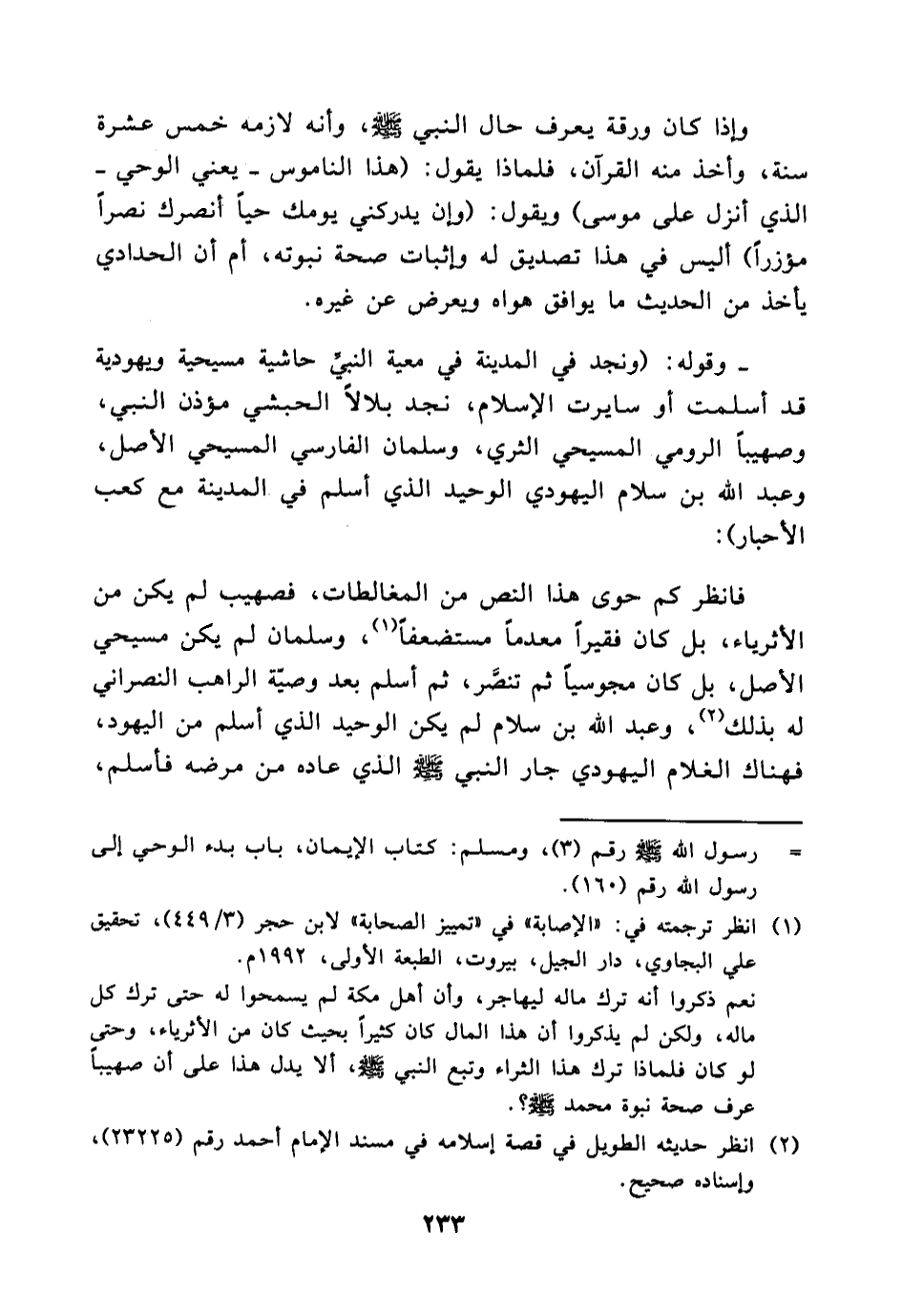 (¬1) انظر ترجمته في الإصابة في ترجمة الصحابة لابن حجر (3/449) ، تحقيق علي البجاوي، دار الجيل، بيروت، ط1،1992، نعم ذكروا أنه ترك ماله ليهاجر، وأن أهل مكة لم يسمحوا له حتى ترك كل ماله، ولكن لم يذكروا أن هذا المال كان كثيرا بحيث كان من الأثرياء، وحتى لو كان فلماذا ترك هذا الثراء وتبع النبي (صلى الله عليه وسلم) ، ألا يدل هذا أن صهيبا عرف صحة نبوة محمد (صلى الله عليه وسلم) ؟.