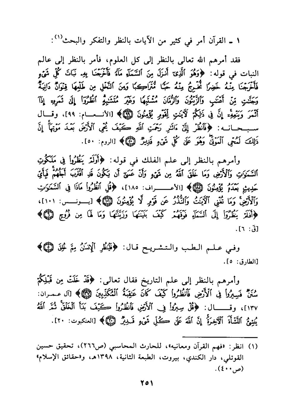 1/القرآن أمر في كثير من الآيات بالنظر والتفكر والبحث:
