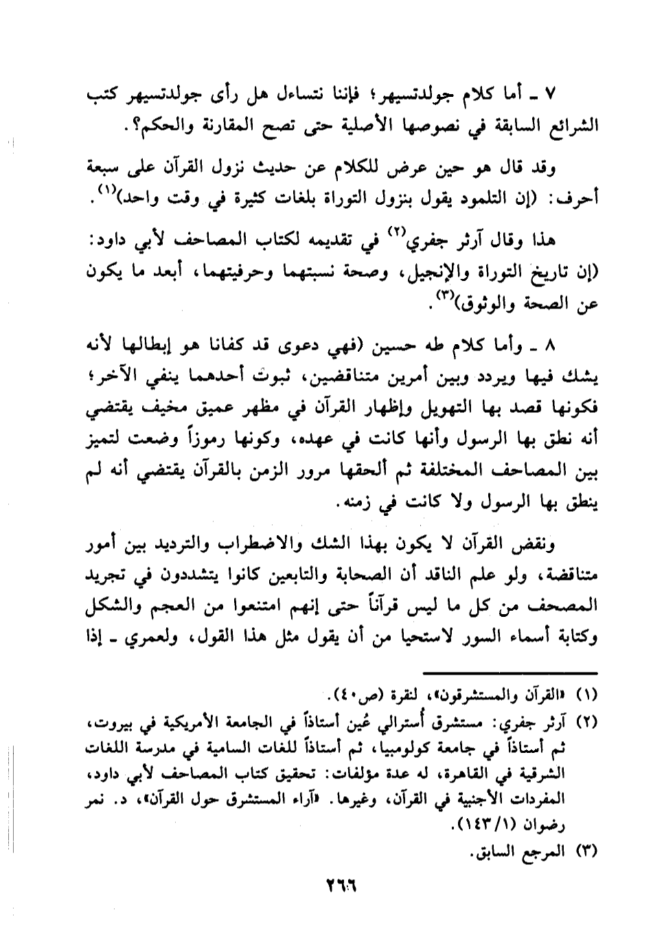 (¬2) آثر جفري: مستشرق استرالي عُين أستاذاً في الجامعة الأمريكية في بيروت , ثم أستاذاً في جامعة كولومبيا , ثم أستاذاً للغات السامية في مدرسة اللغات الشرقية في القاهرة , له عدة مؤلفات منها تحقيق كتاب المصاحف لأبي داود , المفردات الأجنبية في القرآن , وغيرها (آراء المستشرق حول القرآن , د. نمر رضوان (1/143) .