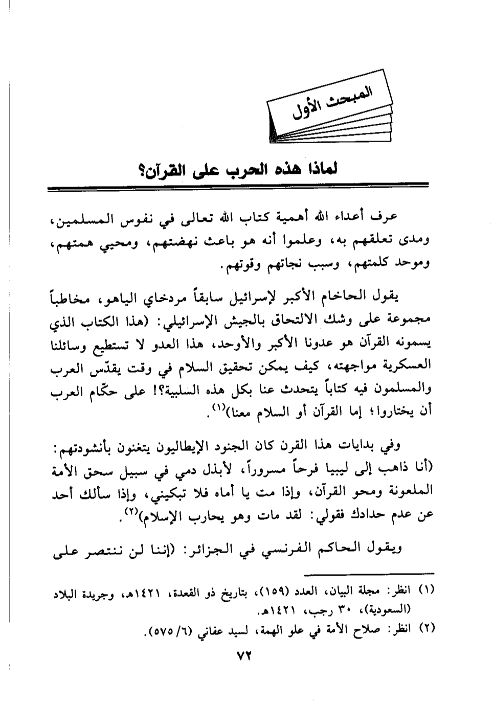 المبحث الأول: لماذا هذه الحرب على القرآن؟