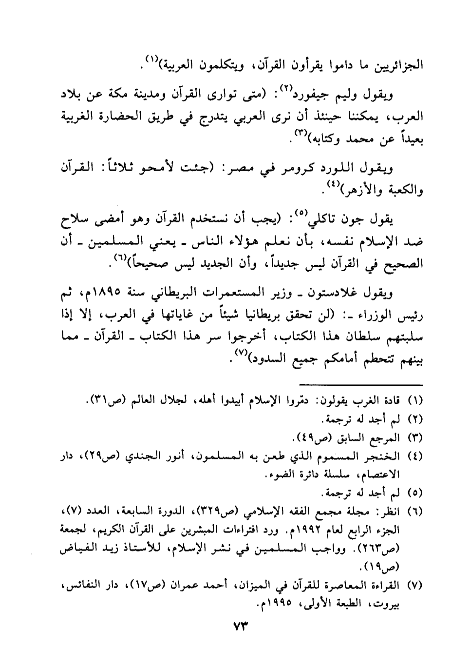 (¬4) انظر: مجلة مجمع الفقه الإسلامي (ص: 329) ، الدورة السابعة، العدد 7، الجزء الرابع لعام 1992، ورد افتراءات المبشرين على القرآن الكريم، لجمعة (ص: 263) ، وواجب المسلمين في نشر الإسلام للأستاذ زيد الفياض (ص: 19) .
