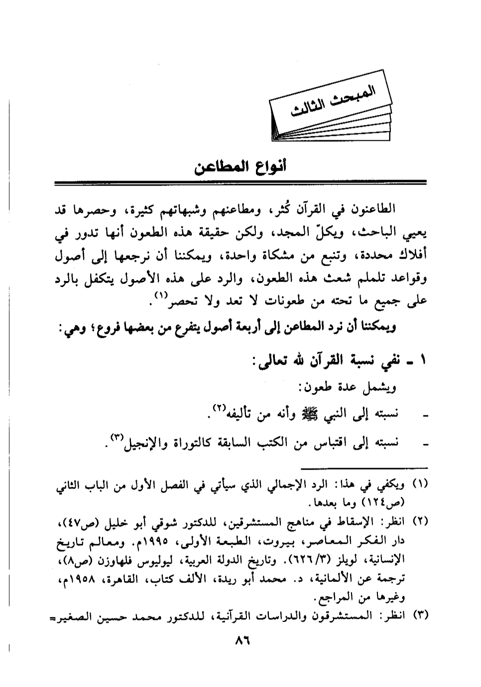 (¬3) انظر: المستشرقون والدراسات القرآنية للدكتور محمد حسين الصغير، (ص: 118-120) ، المؤسسة الجامعة للدراسات والنشر، الطبعة الثانية، 1986، ودائرة المعارف الإسلامية الاستشراقية (ص: 16) ، والعقيدة والشريعة في الإسلام لجولدتسيهر ص: 12، عن كتاب القرآن الكريم في مواجهة الماديين الملحدين للدكتور أحمد الشاعر (ص: 93) دار القلم، الكويت، الطبعة الثانية، 1982، وانظر: القرآن والمستشرقون، لنقرة (ص: 31) وغيرها من المراجع.