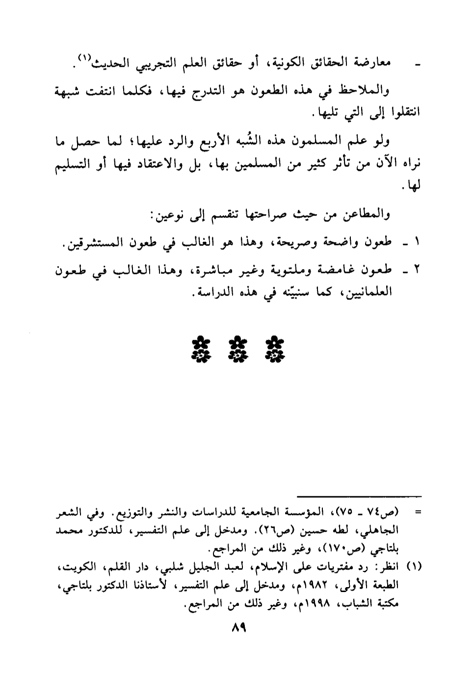 2- طعون غامضة وملتوية وغير مباشرة، وهذا الغالب في طعون العلمانيين.