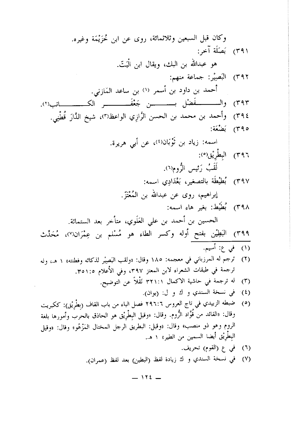 399 - البطين بِفَتْح أَوله وَكسر الطَّاء هُوَ مُسلم بن عمرَان مُحدث