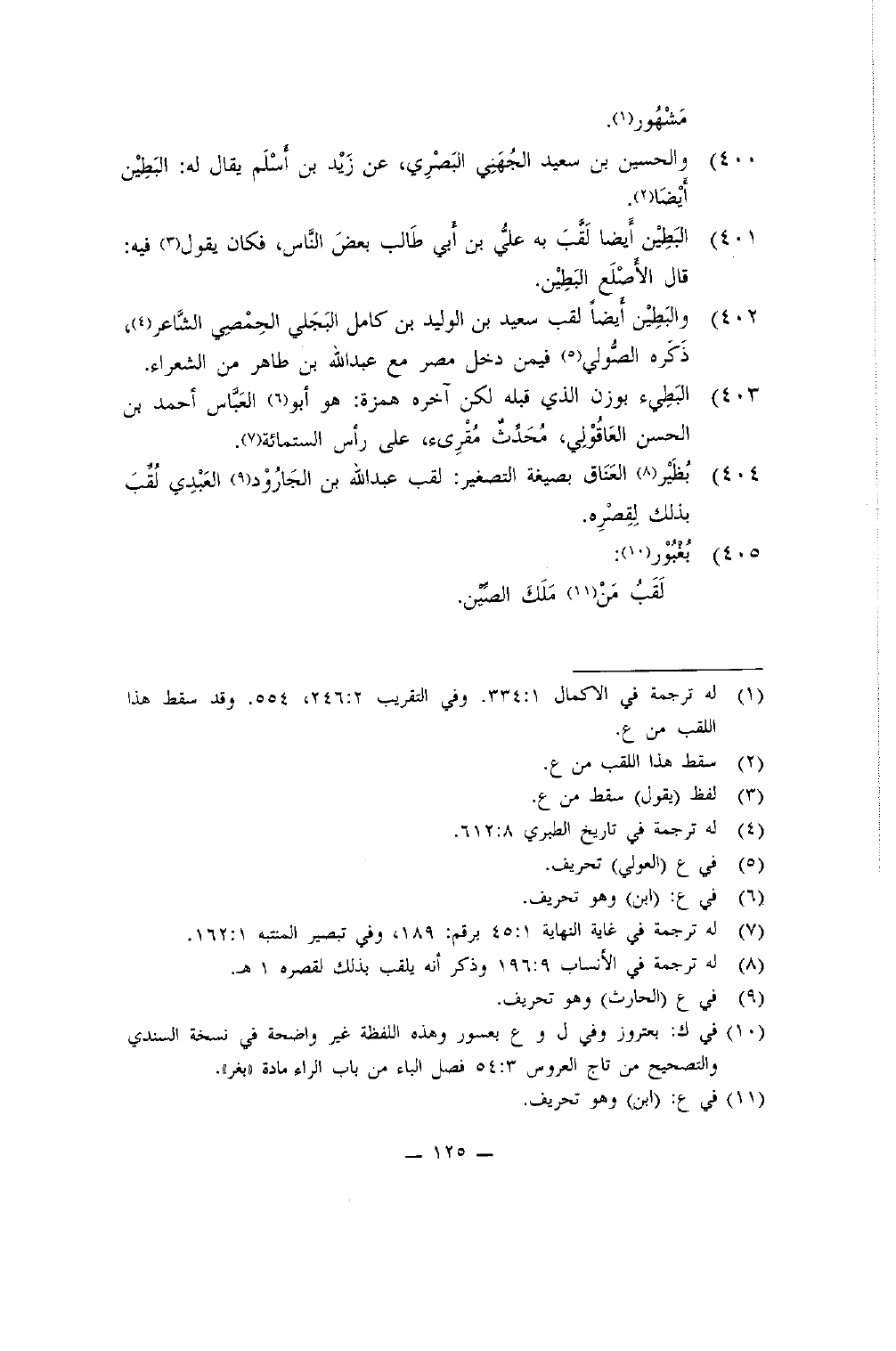 402 - والبطين أَيْضا لقب سعيد بن الْوَلِيد بن كَامِل البَجلِيّ الْحِمصِي الشَّاعِر ذكره الصولي فِيمَن دخل مصر مَعَ عبد الله بن طَاهِر من الشُّعَرَاء