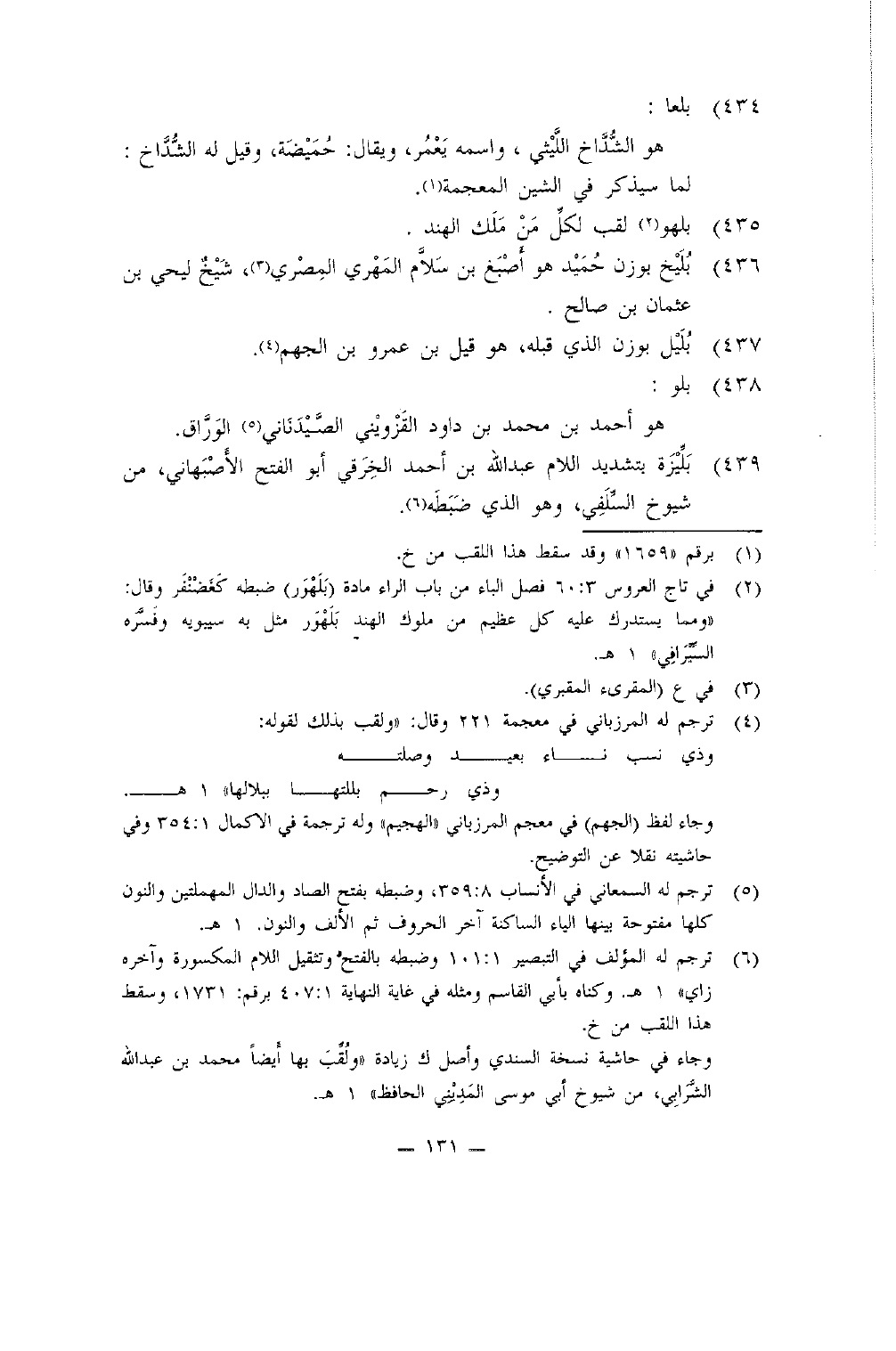 439 - بليزة بتَشْديد اللَّام عبد الله بن أَحْمد الخرفي أَبُو الْفَتْح الْأَصْبَهَانِيّ من شُيُوخ السلَفِي وَهُوَ الَّذِي ضَبطه