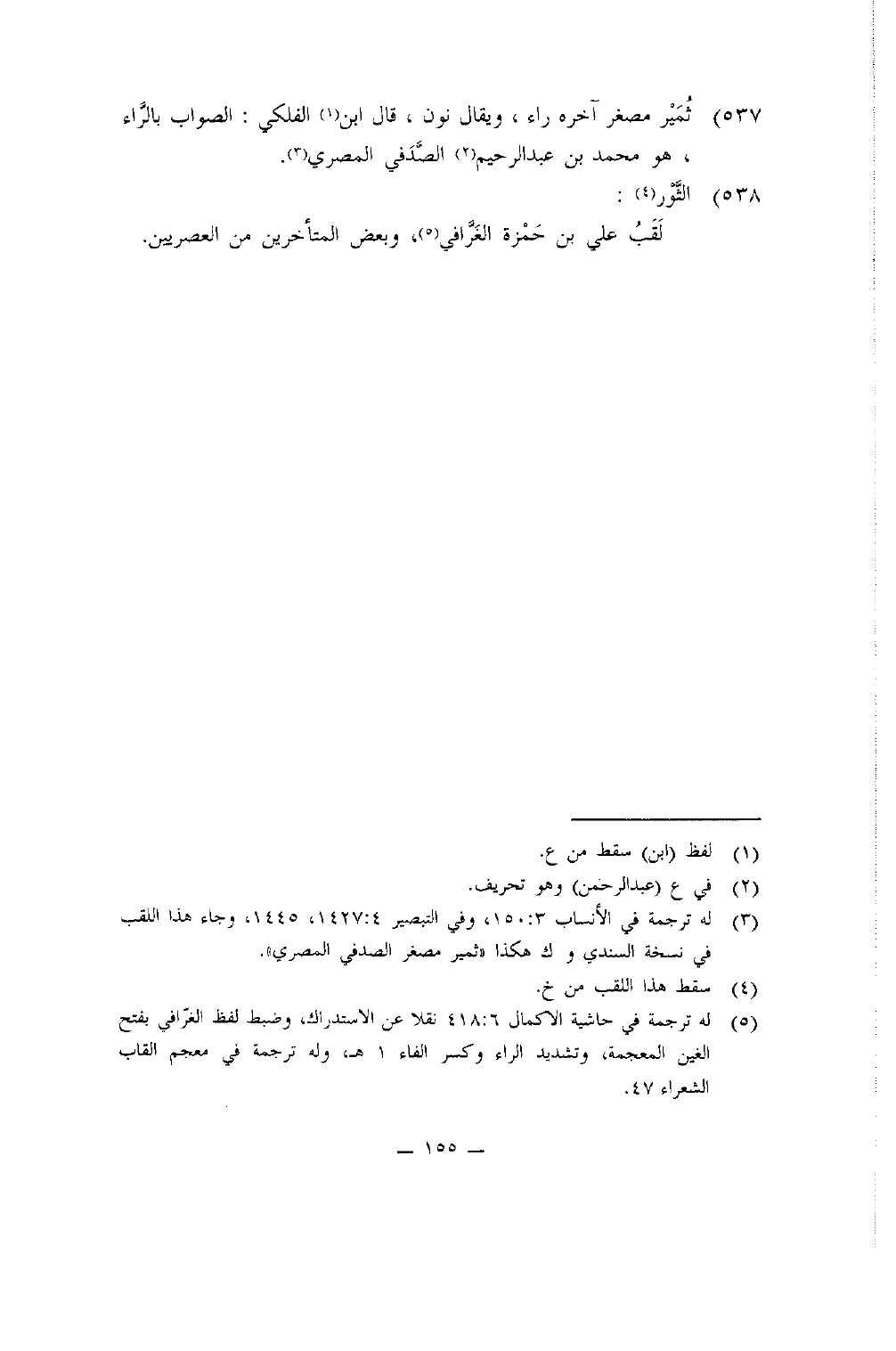 537 - ثمير مصغر آخِره رَاء وَيُقَال نون قَالَ ابْن الفلكي الصَّوَاب بالراء هُوَ مُحَمَّد بن عبد الرَّحِيم الصَّدَفِي الْمصْرِيّ