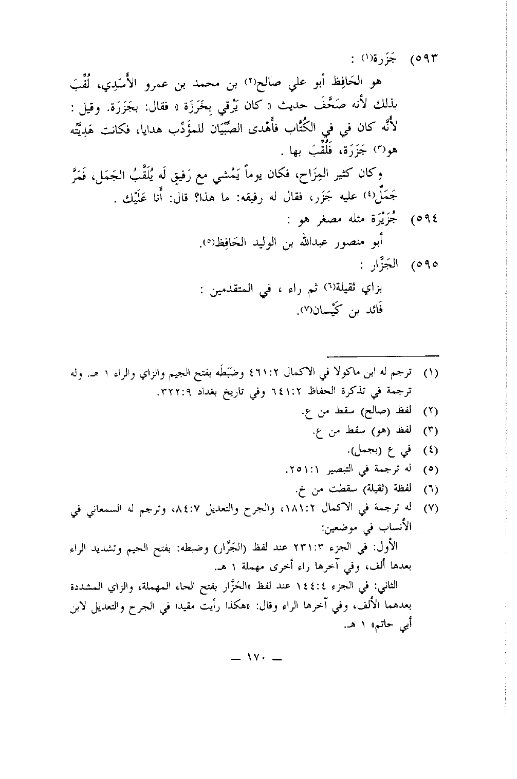 هُوَ الْحَافِظ أَبُو عَليّ صَالح بن مُحَمَّد بن عَمْرو الْأَسدي لقب بذلك لِأَنَّهُ صحف حَدِيث كَانَ يرقي بخرزة فَقَالَ بجزرة وَقيل لِأَنَّهُ كَانَ فِي الْكتاب فأهدى الصّبيان للمؤدب هَدَايَا فَكَانَت هديته هُوَ جزرة فلقب بهَا