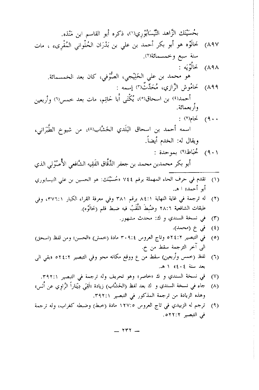 897 - خالوه هُوَ أَبُو بكر أَحْمد بن عَليّ بن بدران الْحلْوانِي المقرىء مَاتَ سنة سبع وَخَمْسمِائة