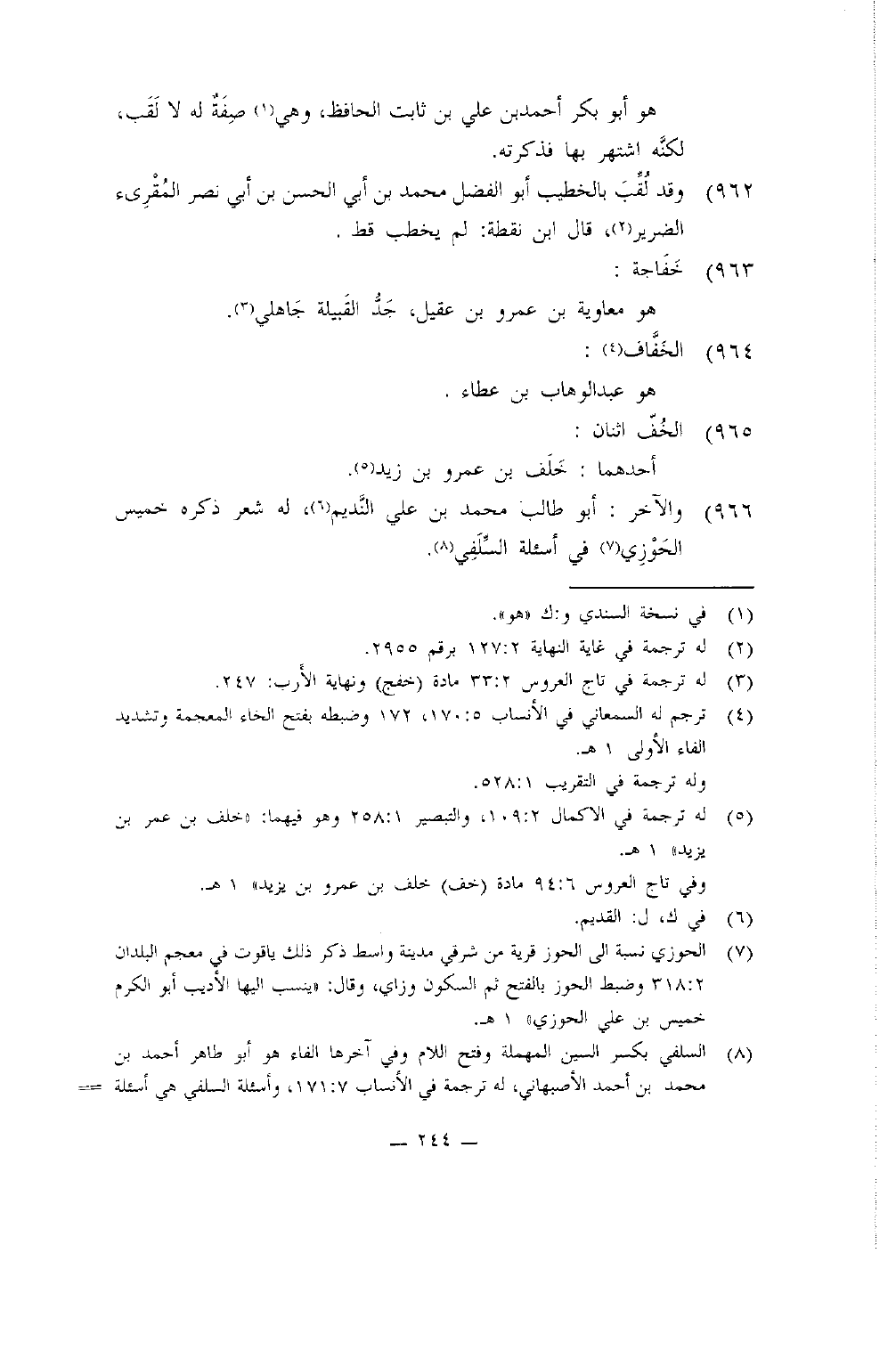 هُوَ أَبُو بكر أَحْمد بن عَليّ بن ثَابت الْحَافِظ وَهِي صفة لَهُ لَا لقب لكنه اشْتهر بهَا فَذَكرته
