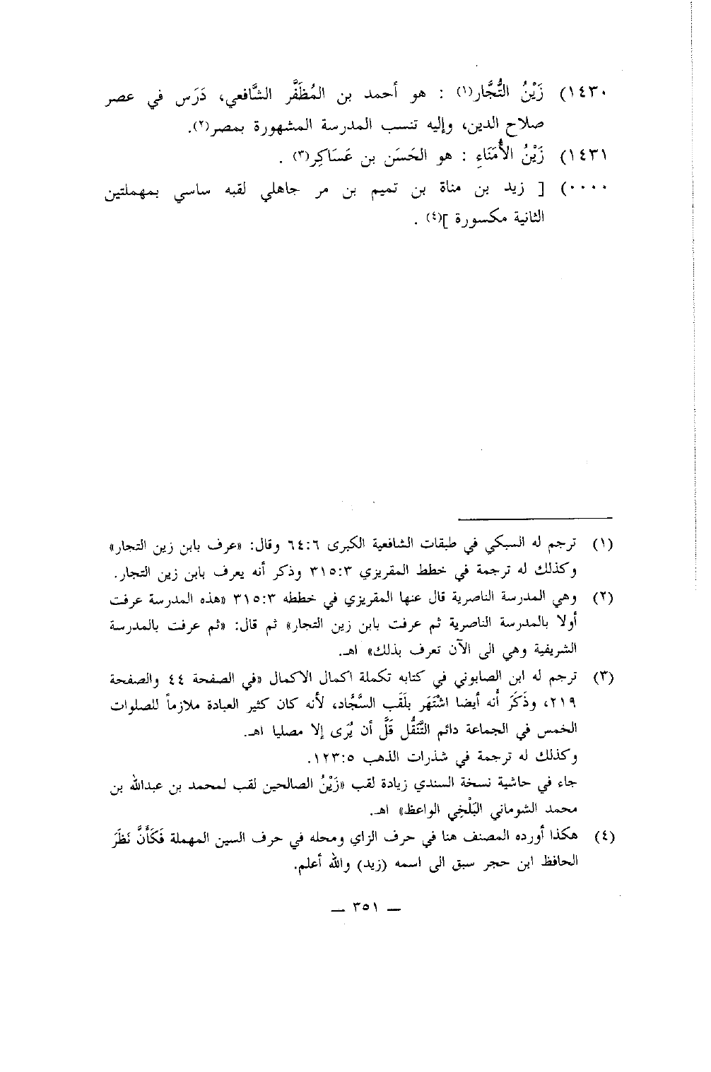 1430 - زين التُّجَّار هُوَ أَحْمد بن المظفر الشَّافِعِي درس فِي عصر صَلَاح الدّين وَإِلَيْهِ تنْسب الْمدرسَة الْمَشْهُورَة بِمصْر