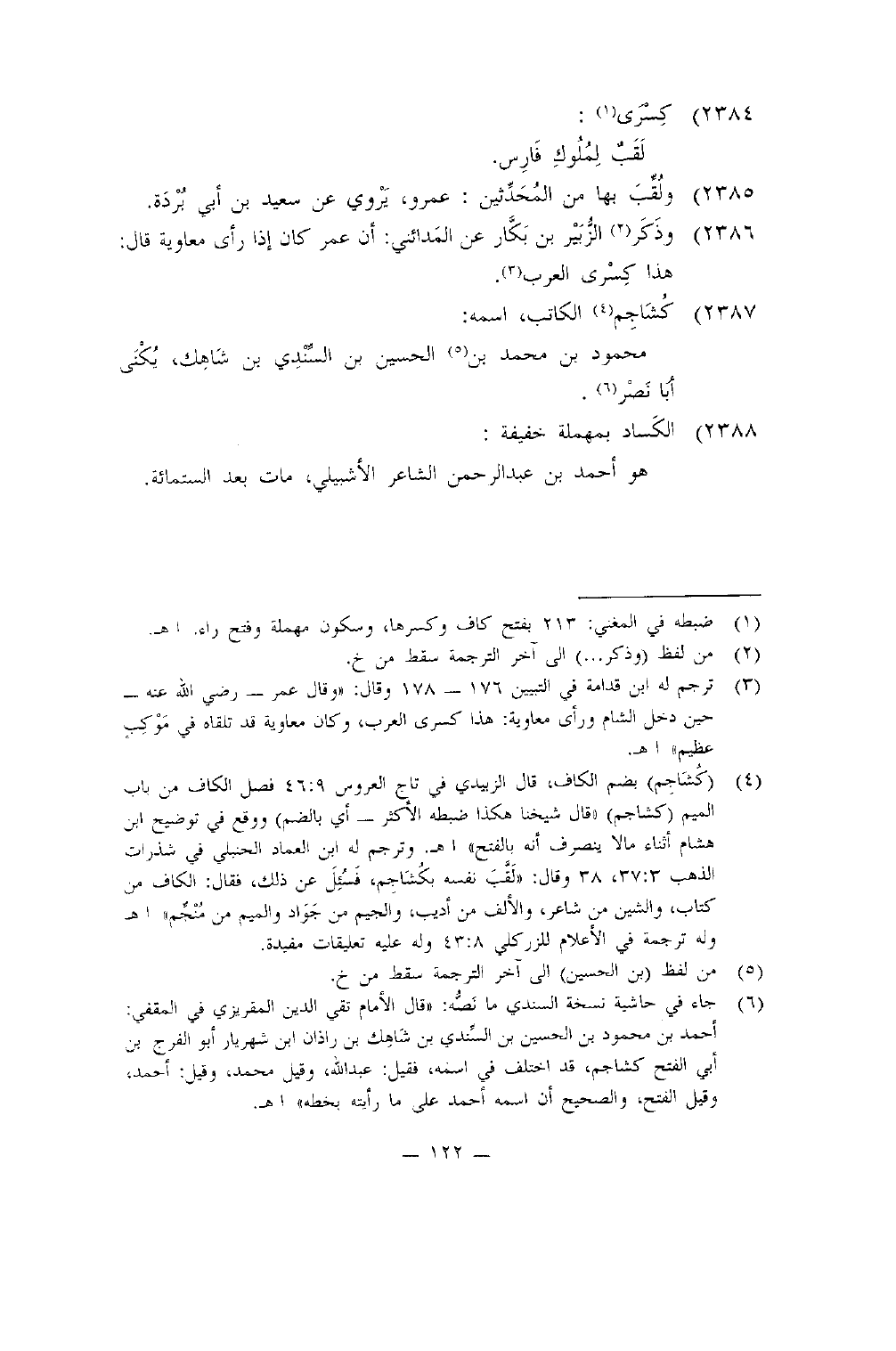 2386 - وَذكر الزبير بن بكار عَن الْمَدَائِنِي أَن عمر كَانَ إِذا رأى مُعَاوِيَة قَالَ هَذَا كسْرَى الْعَرَب