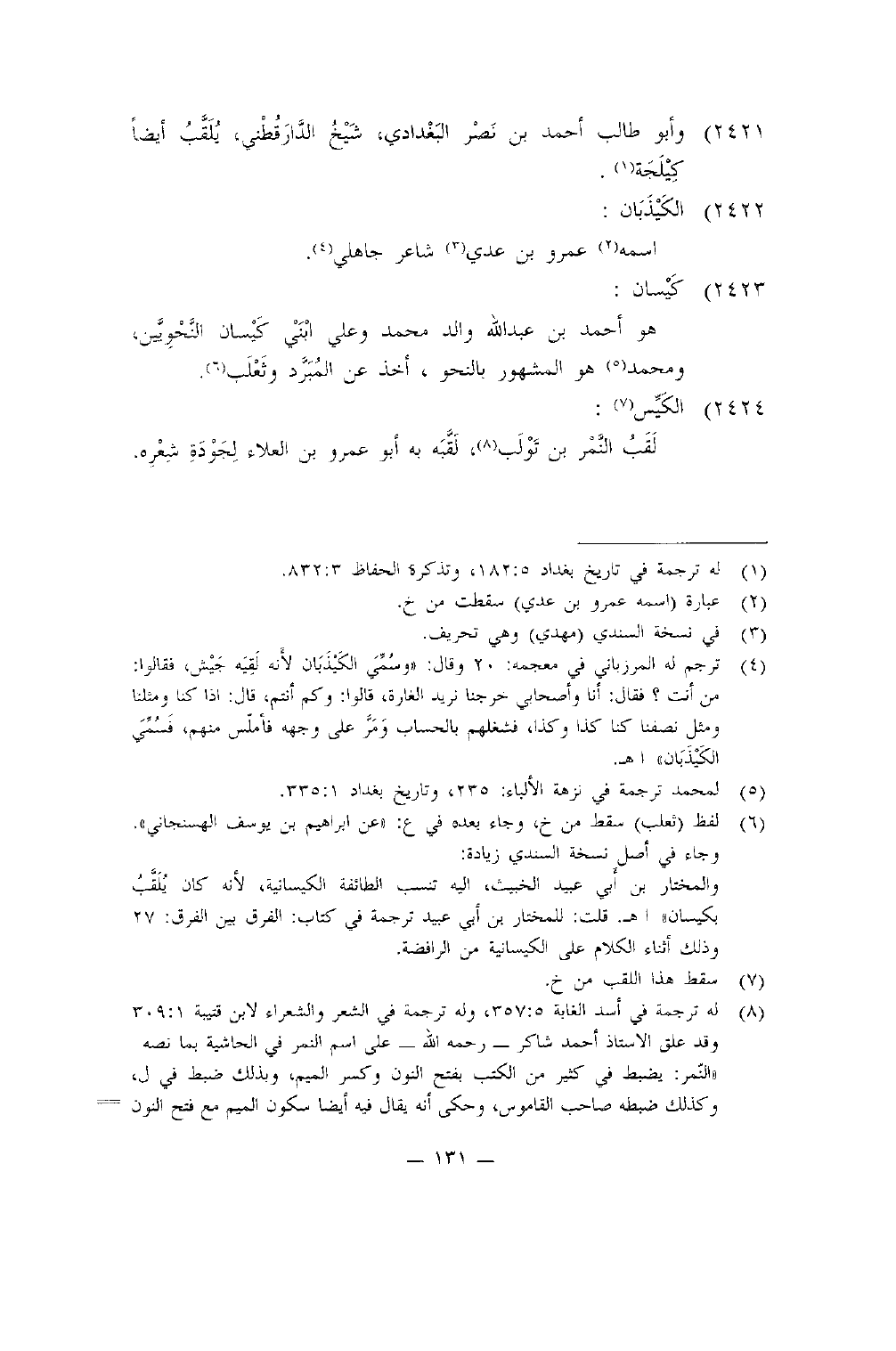2421 - وَأَبُو طَالب أَحْمد بن نصر الْبَغْدَادِيّ شيخ الدَّارَقُطْنِيّ يلقب أَيْضا كيلجة
