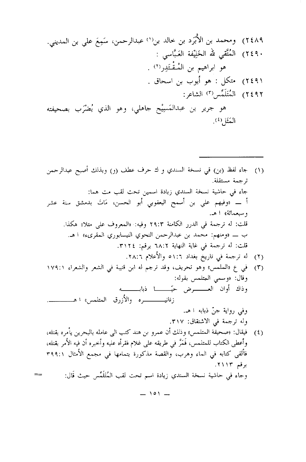 2489 - وَمُحَمّد بن الْأَبْرَد بن خَالِد بن عبد الرَّحْمَن سمع عَليّ بن الْمَدِينِيّ