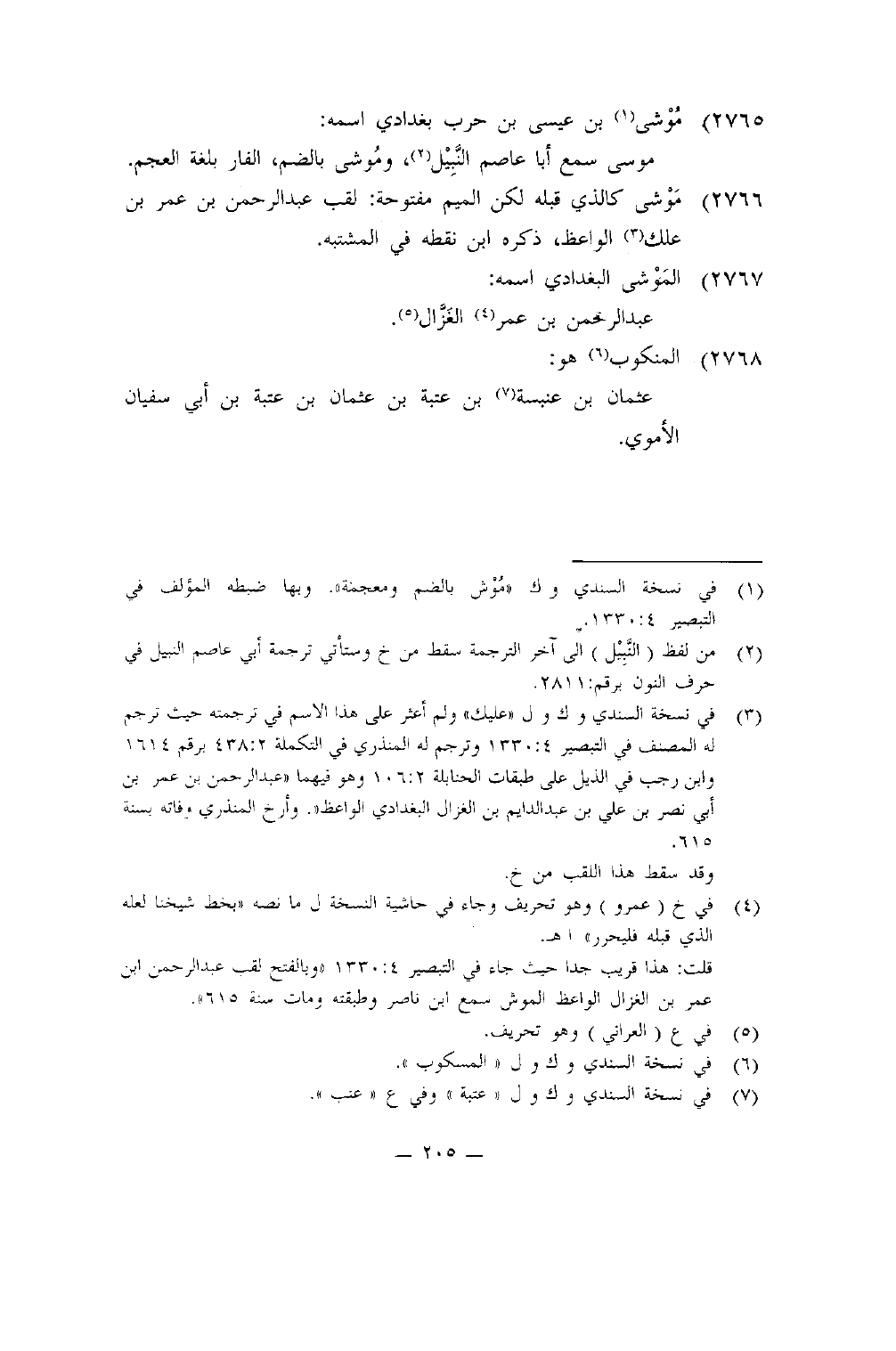 2766 - موشى كَالَّذي قبله لَكِن الْمِيم مَفْتُوحَة لقب عبد الرَّحْمَن بن عمر بن علك الْوَاعِظ ذكره ابْن نقطة فِي المشتبه
