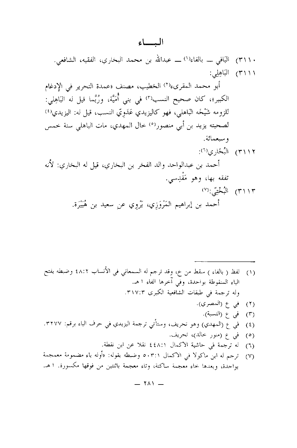 3110 - البافي بِالْفَاءِ عبد الله بن مُحَمَّد البُخَارِيّ الْفَقِيه الشَّافِعِي