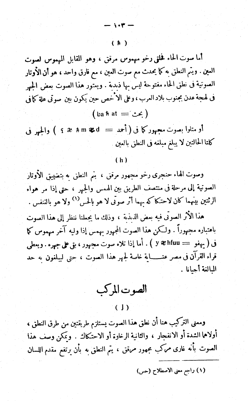 إذا تهجينا كلمة "استخراج"، فلا شك أن مكوناتها هي كسرة في البداية، فسين ساكنة، فتاء مسكورة، فحاء ساكنة، فراء بعدها ألف مد، فجيم والذي يهمنا هنا هو أننا إذا أردنا النطق بهذه الكلمة، دون أن تسبقها كلمة أخرى، فسنضطر إلى التمهيد للنطق بها بخلق همزة ليست من بينها، هي همزة الوصل، وستوضع هذه الهمزة قبل الكسرة التي في البداية، ولكننا إذا قلنا مثلا: "أمر استخراج"، فسوف لا نضطر إلى خلق هذه الهمزة، لماذا؟ لأن الراء من كلمة أمر سدت مسدها، ولكن الراء من كلمة أخرى، والتشكيل لا يعتبر المقطع وحده سمعية كما تفعل الأصوات؛ فإذا كان المقطع من الناحية الأصوتية هو مجموع الهمزة، والكسرة والسين الساكنة في الحالة الأولى، ومجموع الراء والحركة والسين الساكنة في الحالة الثانية، فإنه يتكون من وجهة النظر التشكيلية من الحركة والسين الساكنة فحسب؛ لأن الهمزة والراء طارئتان، وكلتاهما غريبة على