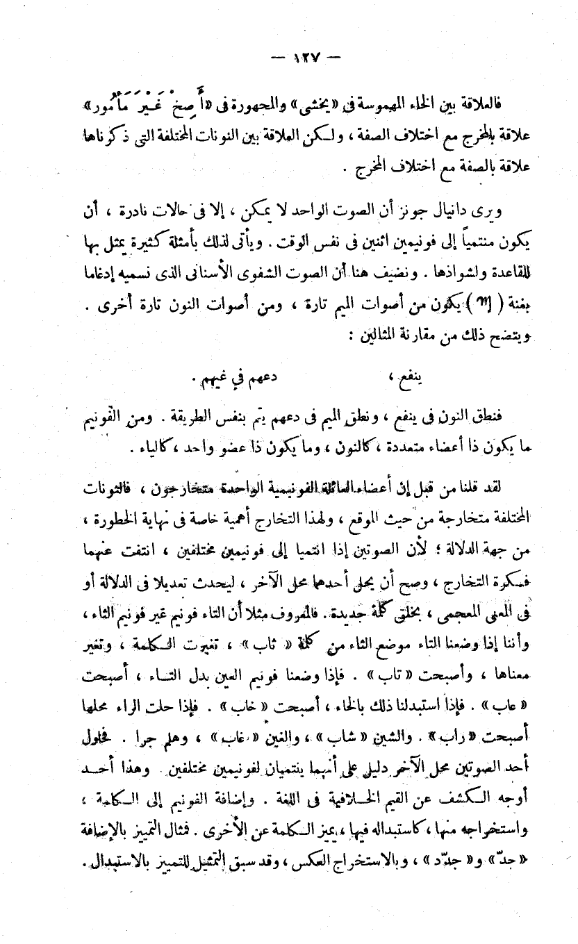 ومن هنا لا نكون مبالغين، إذا قلنا: إن النبر في الكلمات العربية موقعية تشكيلية وصرفية في نفس الوقت، أما في الأنساق الكبرى "أو السياقات، أو عبارة أخرى، الجمل المجموعات الكلامية"، فيقع ترتيب النبر على غير المقتضات الصرفية البحتة، بل إنه لا يتربط بها، وإن وافقها في الظاهر، هذا النبر الذي في السياق، إنما يكون من وظيفة المعنى العام، أي أنه نبر دلالي، ومعنى هذا أن في اللغة العربية نوعين من وقعية النبر في التشكيل الصوتي.