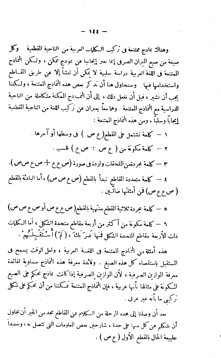 2- أن الكلمات العربية تأتي على هيئات صرفية تسمى الصيغ، وأن الخلاف بين الكلمات من الناحية التركيبية، هو في الواقع اختلاف بين هذه الصيغ.