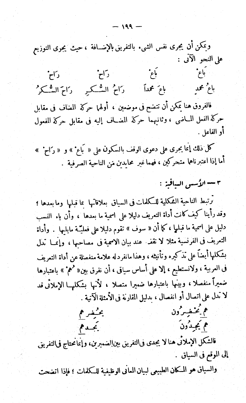 إلى الطريقة أخرى في الضبط، ولا تبلغ من الدقة مبلغ الكتابة الأصواتية، تلك الطريقة هي ذكر الحركات في الكلمة؛ فكانوا يقولون مثلا في "هزبر": هي بكسر، ففتح، فسكون، وهلم جرا، ولقد كانت هذه الطريقة العربية، تهدف إلى تحديد الحروف، لا إلى تحديد الأصوات، ولذلك لا يمكن أن نسميها بيانا للنطق.