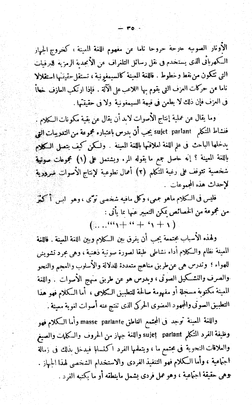 ولا ينطبق هذان الجانبان على النظر والعمل؛ لأن في كلامنا نظرا وعملا، وفي لغتنا كذلك، ونظرية الكلام من دراسة علم النفس، وتطبيقه من عمل المتكلم، ونظرية اللغة من دراسة علم اللغة، وتطبيق اللغة يقوم به هؤلاء الذين يعلمون ويدرسون كودها بأنفسهم، وكلما نجحنا في نقل مدركاتنا، فنحن نطبق الكلام، وكلما حللنا طريقة تعبيرية بنجاح، أو شرحناها، أو كونا جملة أجنبية بالطريقة التركيبية الخالصة، فنحن نطبق اللغة.