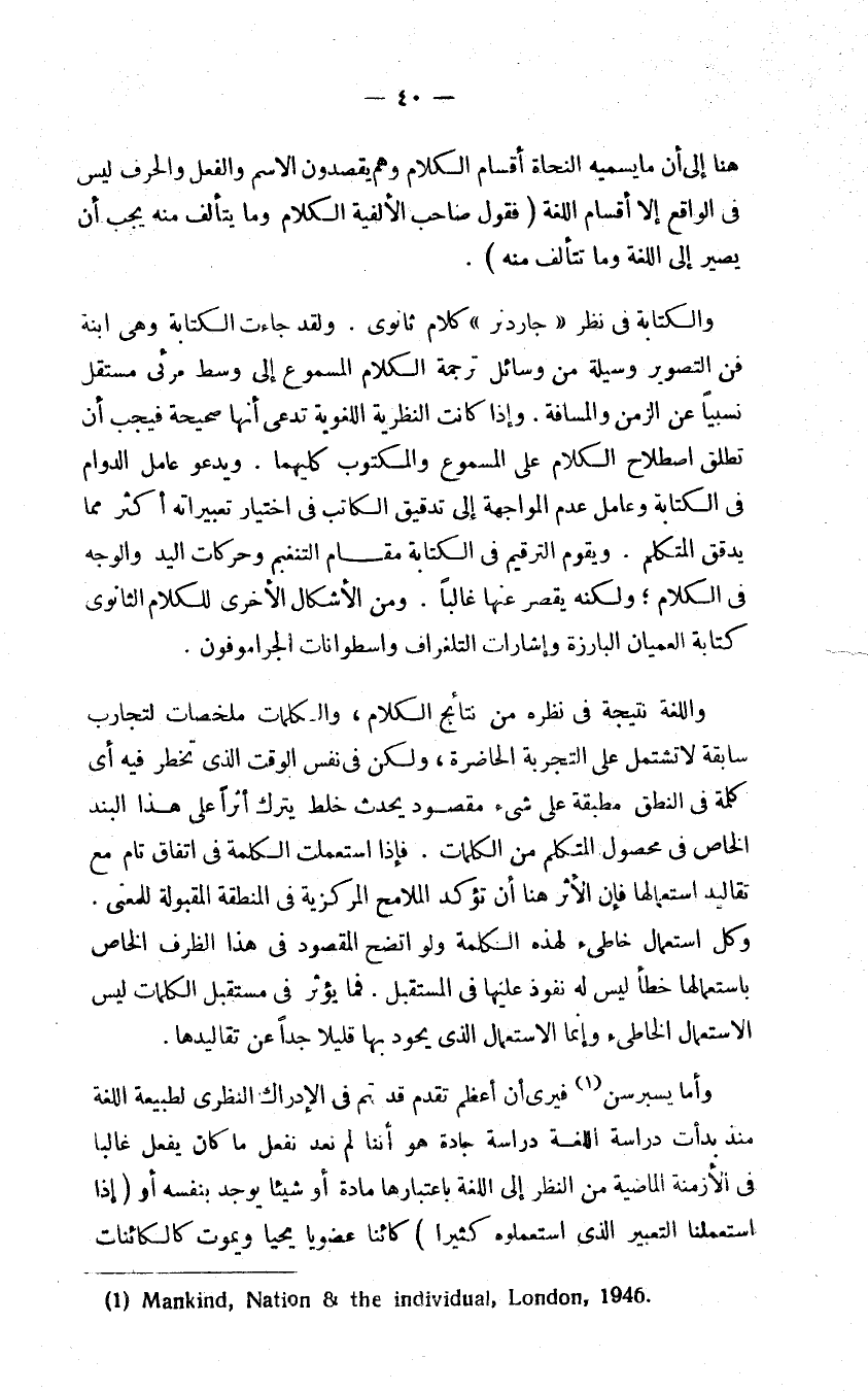 وللناس فكرة دقيقة عن لغاتهم؛ فهم يحسون بمنتهى الدقة بأقل خروج على اللغة، ولذلك فإن خير من يستشار في أمور الاستعمال اللغوي هم العامة، أما المجامع اللغوية، فإنها يحق لها أن تبحث ما إذا كان الأتوموبيل مذكرا أو مؤنثا، أو بعبارة أخرى أن تبحث في المسائل النظرية.