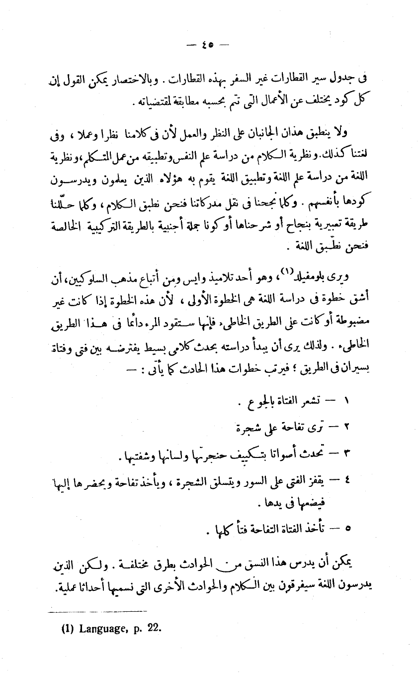 أما اللغة فهي طريقة إنسانية غير غرزية لنقل الأفكار، والعواطف والرغبات بواسطة نظام من الرموز، التي تستعمل بحسب الإرادة، هذه الرموز سمعية مبدئيا، وهي تنتج عما يسمى عادة أعضاء النطق، وربما جر الكلام عن أعضاء النطق إلى الظن بأن الكلام غرز، ولكن هذه الأعضاء في حقيقتها ليست وظيفتها النطق، وإنما تقوم بوظائف حيوية تساعد على جعل استمرار الحياة أمرا ممكنا.