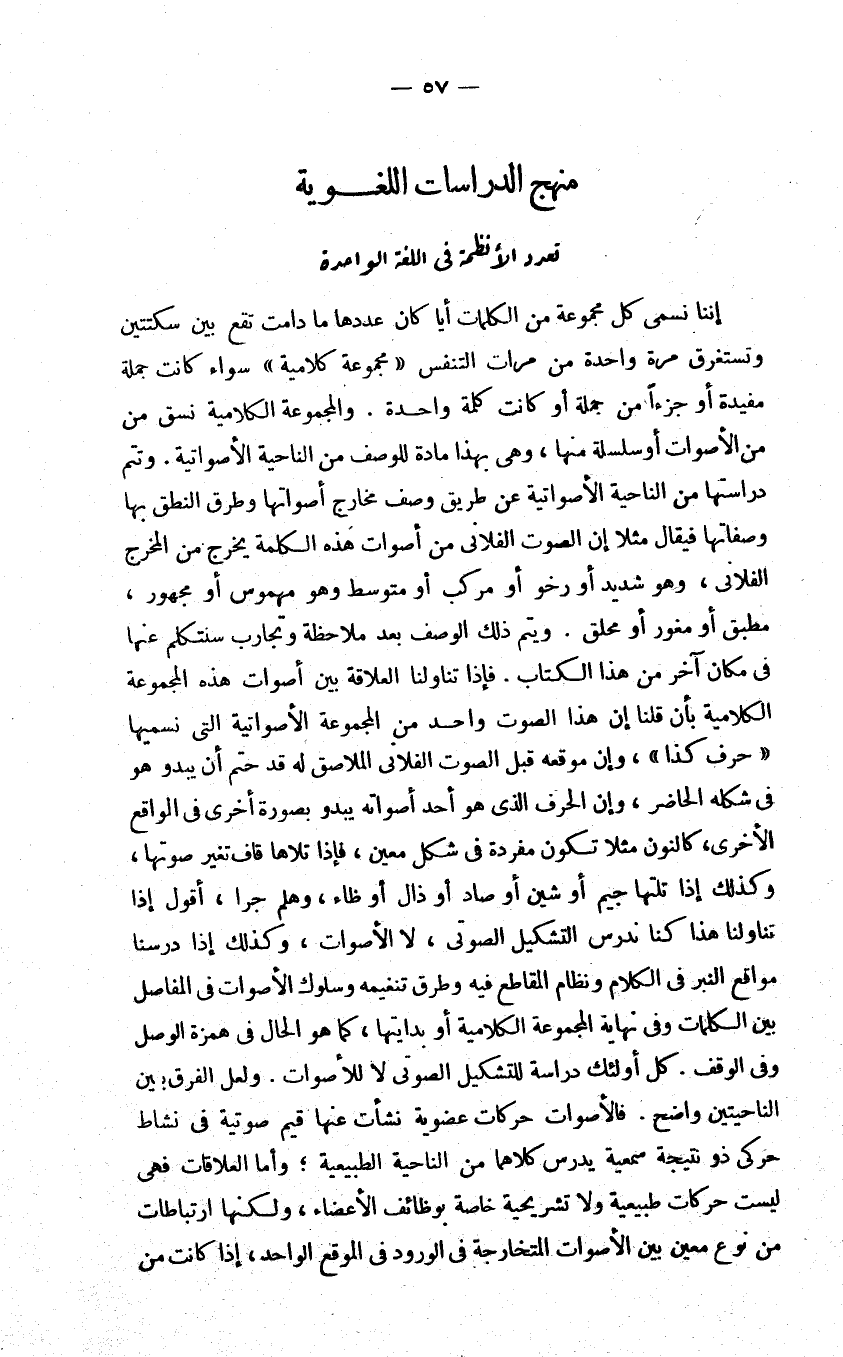 ولست أريد هنا أن أدخل في مسألة نقل الأعلام الأجنبية بحروفها إلى اللغة العربي، واستعارة الكلمات الأجنبية بحروفها كذلك؛ فلهذا النقل نظام خاص من المقابلات لا أحب أن أخوض فيه في هذا الكتاب، ولكن الذي أحب أن أقوله هنا، هو أن لدراسة الأصوات منهجا خاصا بها تبحث على أساسه، وما دام إنتاج الصوت عملا فرديا -وقد سبق أن قلنا: إن الأخوين لا ينطقان نطقا متشابها