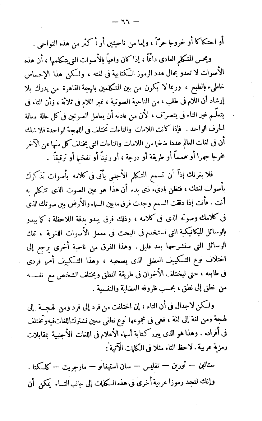 وبحثنا سلوكه في المواقع المختلفة، لكل موقع مثاله، وكررنا البصمات لكل مثال معين، فقد رأينا صورة لها بعض الوضوح عن بلاتوغرافيا هذا الصوت المعين، وقد تكون البصمتان للصوت الواحد مختلفتين من الناحية النوعية، إذا