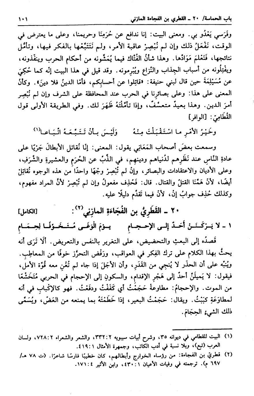 لا يركنن أحد إلى الأحجام ... يوم الوغى متخوفاً لحمام