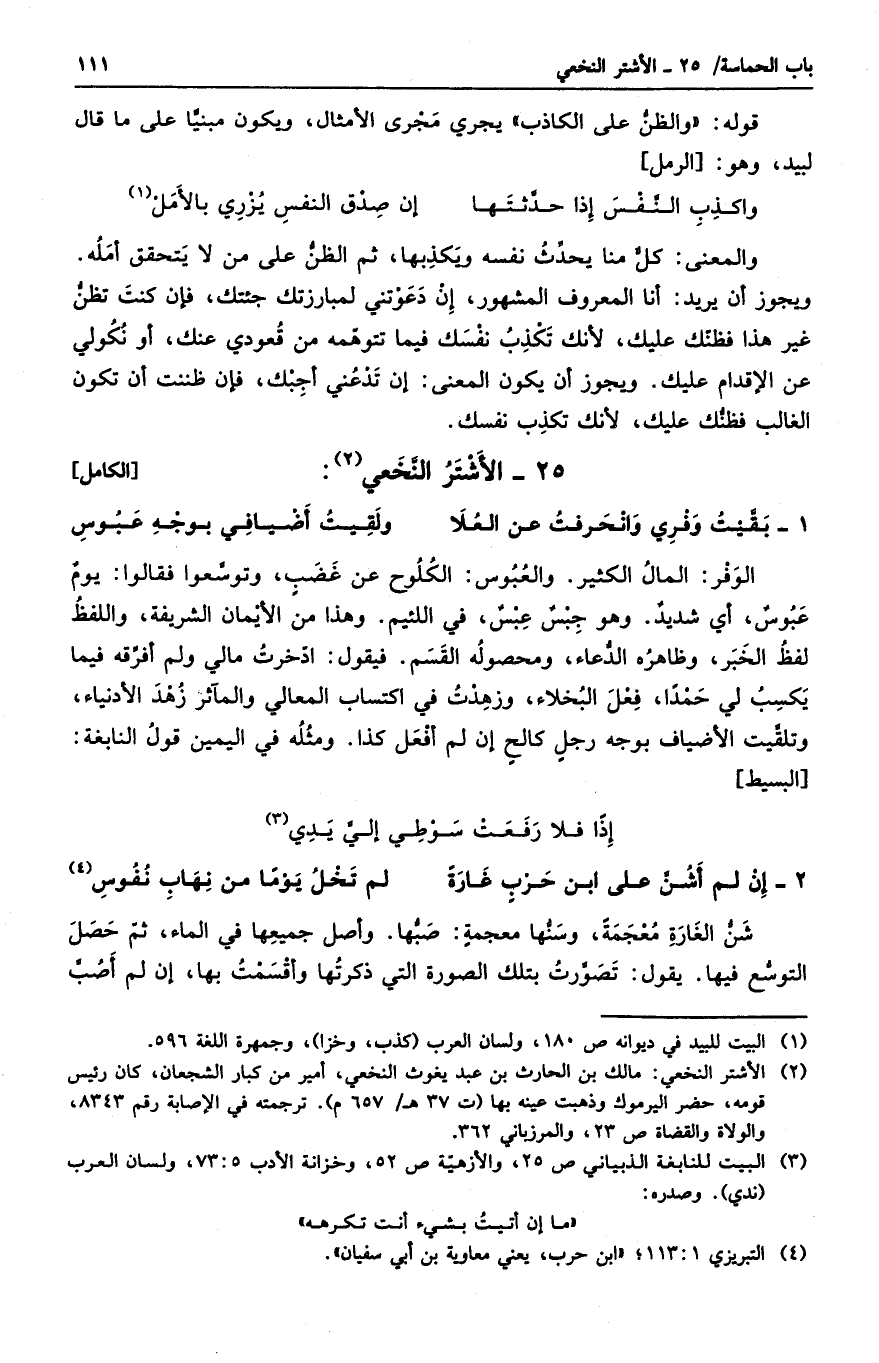بقيت وفري وانحرفت عن العلا ... ولقيت أضيافي بوجه عبوس